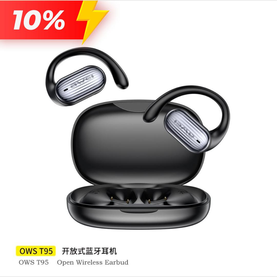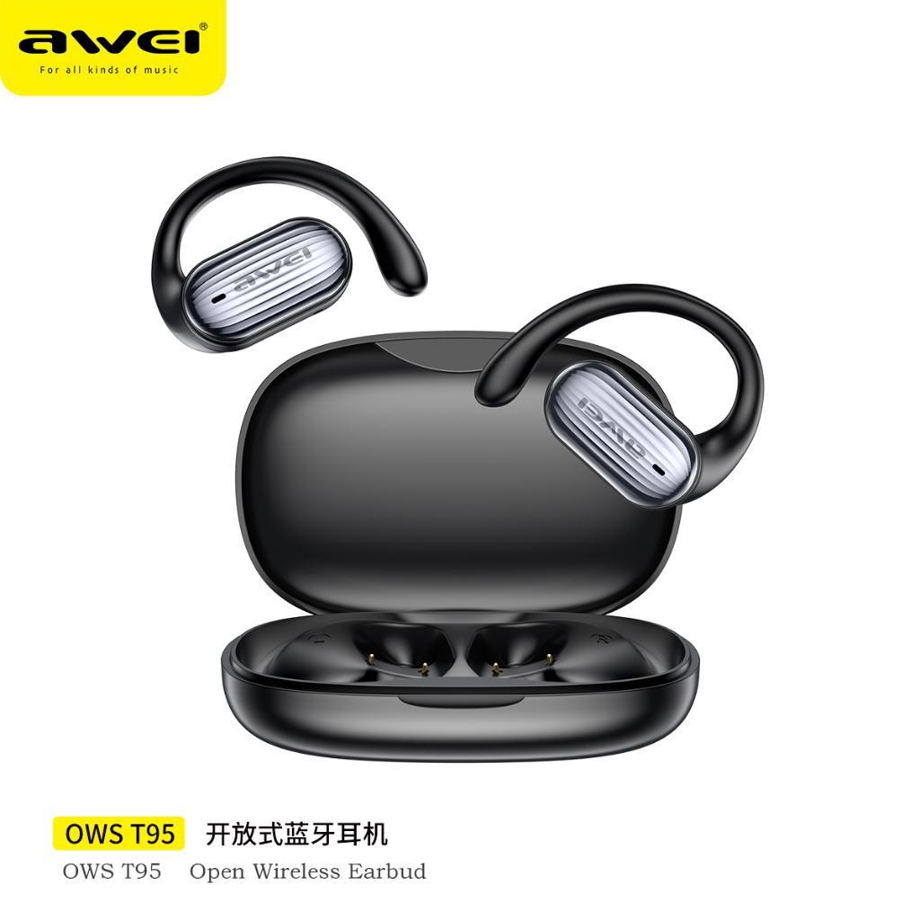 Awei OWS T95 TWS Bluetooth Open Ear Sports Earbuds Dual Bass Liquid Silicone IPX6 Waterproof with Mic