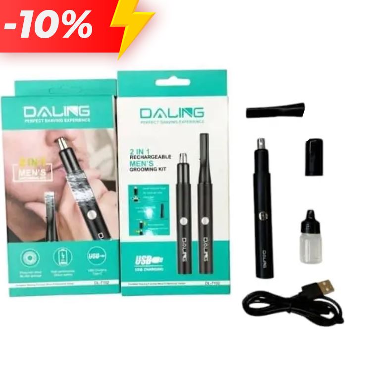 - The DALING DL-7102 2-in-1 Men's Grooming Kit is designed to offer a perfect shaving experience with its blend of functionality and convenience. This grooming kit is an ideal solution for those seeking precision and ease-of-use in their grooming routine. It ensures a sharp trimming effect while being gentle on the skin, so users can maintain their desired look without any discomfort.