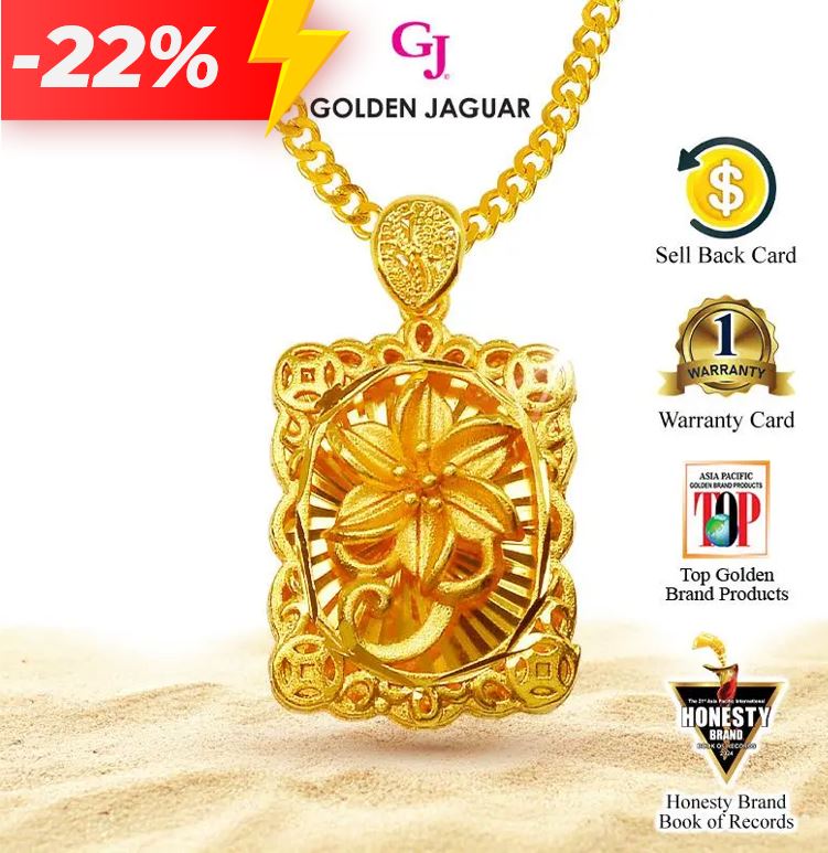Emas Jaguar (8.12 g) GJ Rantai Leher Necklace Papan + Loket Bunga Kerawang (416500201+BKK716)