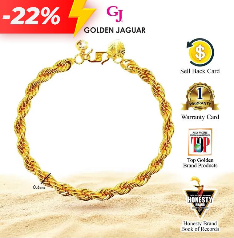 EmasJaguar 15.9g 916 Gold Plated GJ Gelang Tangan Bracelet Pintal 0.6 (2860601)