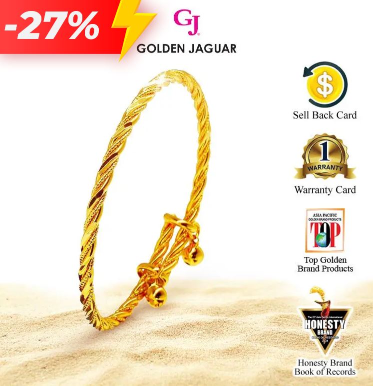 EmasJaguar 17.1g 916 Gold Plated GJ Rantai Tangan Gelang Tangan Bangle Pintal Kikir Adjustable (58601A)