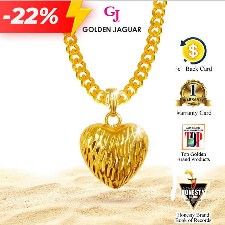 EmasJaguar 25.1g 916 Gold Plated GJ Rantai Leher Necklace Papan 0.4 + Loket Love Kerang XL (416600401+LKB756)