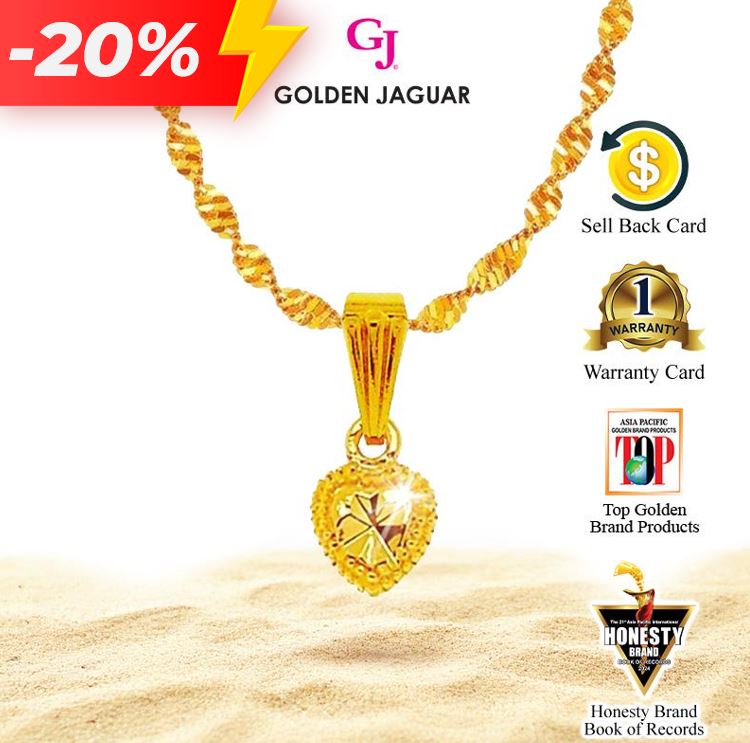 EmasJaguar 4.9g 916 Gold Plated GJ Rantai Leher Necklace Gila Gila 50CM + Loket Simple Love (456500201+LSI756)