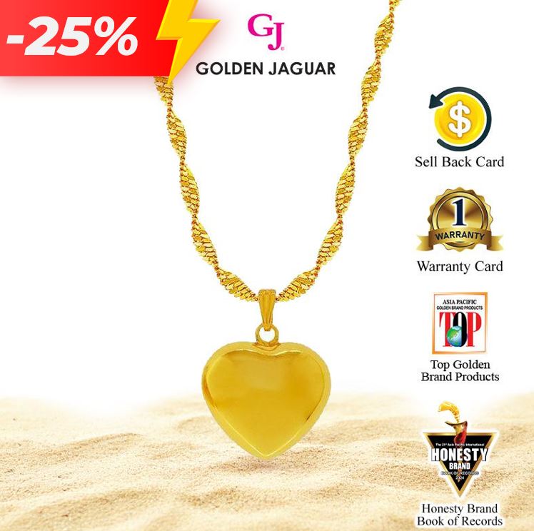 EmasJaguar 6.2g 916 Gold Plated GJ Rantai Leher Necklace Gila Gila 50CM + Loket Love Gemuk M (456500301+LGM75616)