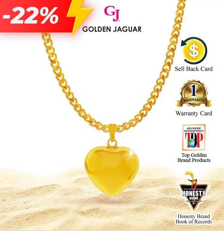 EmasJaguar 7.3g 916 Gold Plated GJ Rantai Leher Necklace Papan 50CM + Loket Love Gemuk M (416500201+LGM75616)