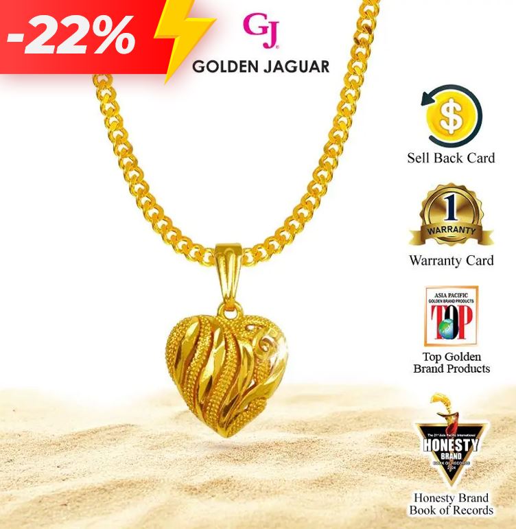 EmasJaguar 7.9g 916 Gold Plated GJ Rantai Leher Necklace Papan 50CM + Loket Pendant Love 3000 Gold (416500201+L3756)