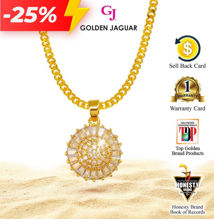 EmasJaguar 9.1g 916 Gold Plated GJ Rantai Leher Necklace Papan + Loket Pendant Bunga Matahari (416500201+SF716)