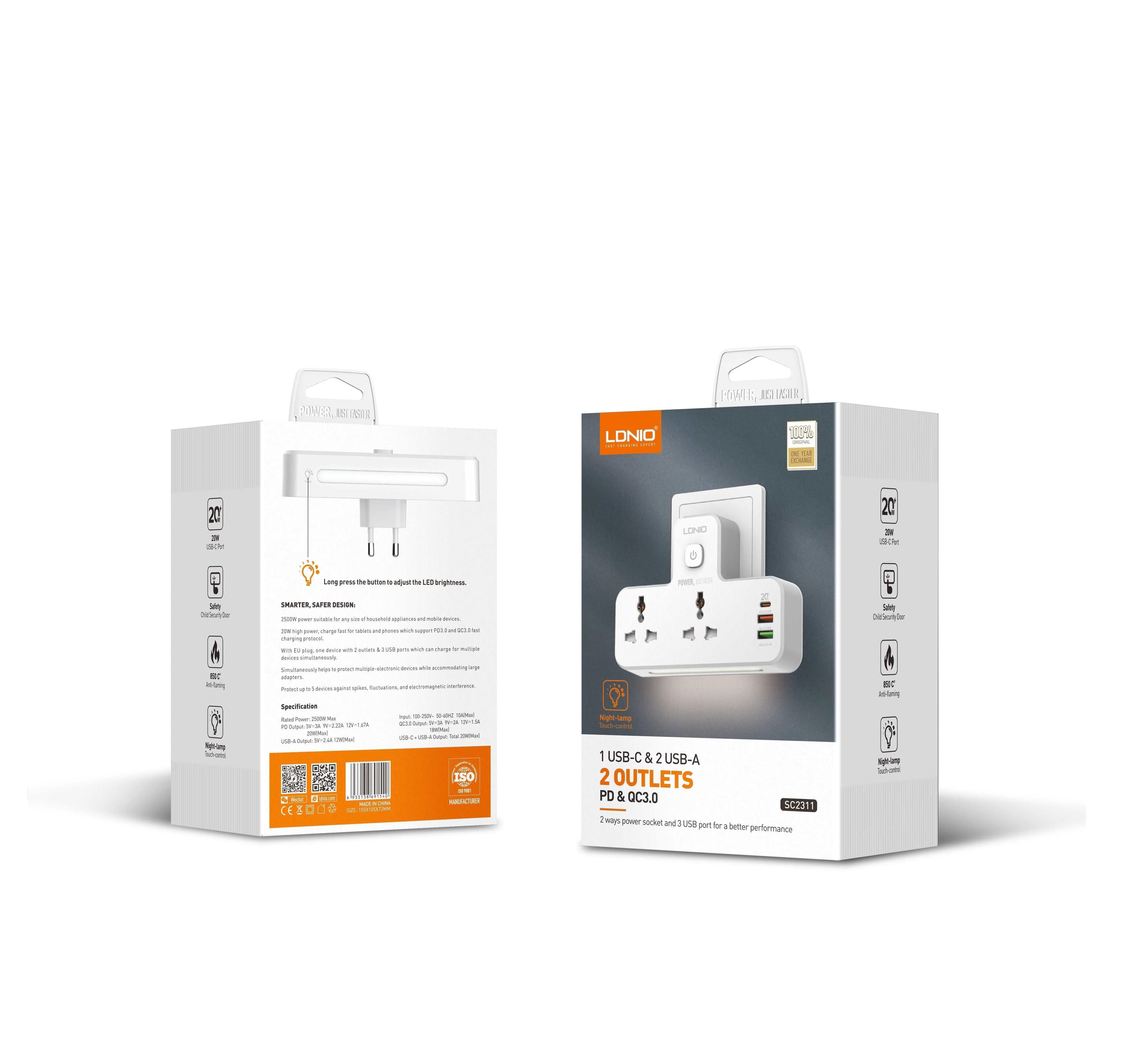 LDNIO SC2311 2 Universal Port + 3 Port USB 20W PD & QC3.0 Power Socket