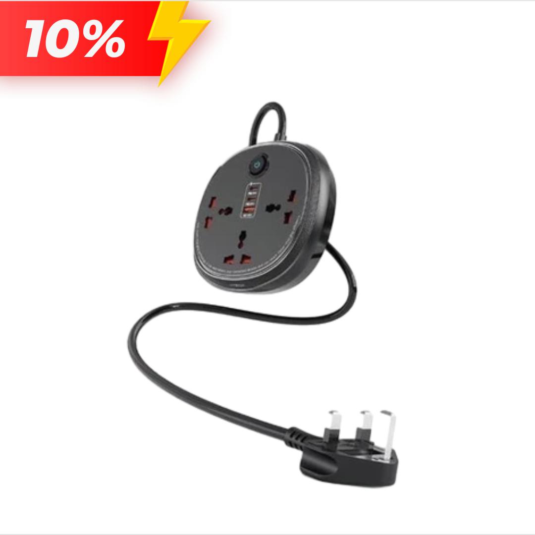 Moxom MX-ST25 Extension 3 Pin Plug Cord With 3 Universal Socket + Usb + Type C Port