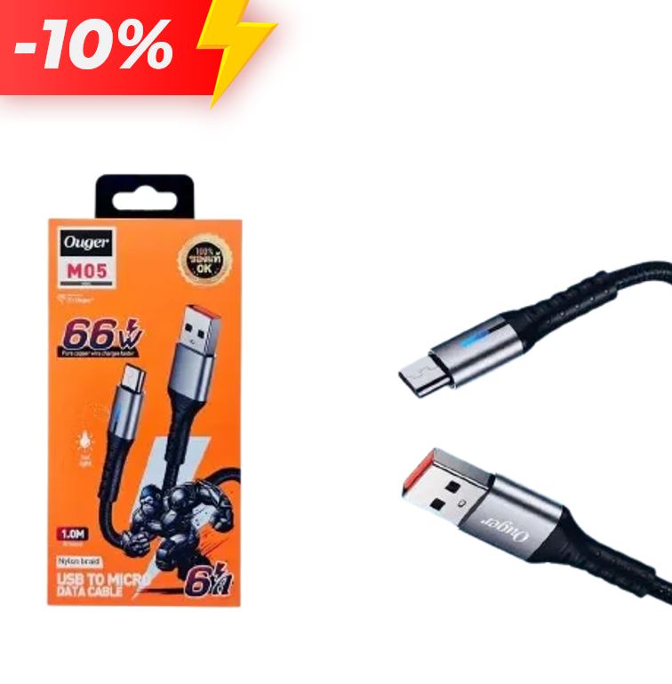 - The OUGER M05 V8 data cable is a sophisticated accessory designed to elevate your charging experience with both speed and durability. This cable stands out for its remarkable charging capacity and resilience, making it an ideal choice for users who demand performance and reliability from their tech accessories.