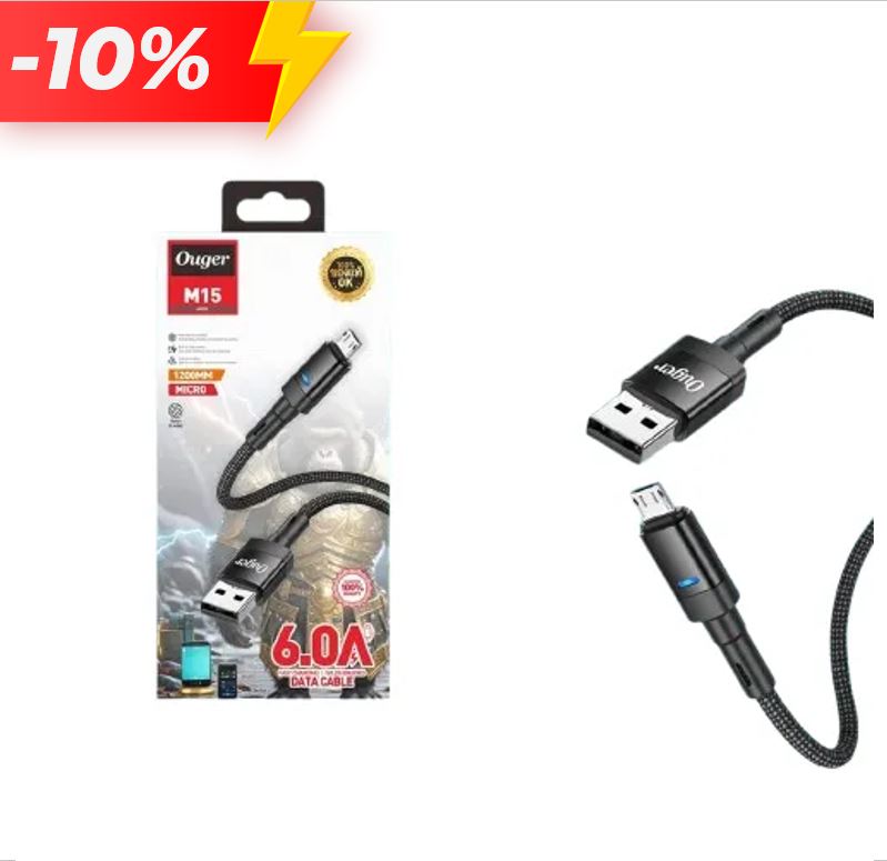 - The OUGER M15 V8 6A 1200mm is a high-performance fast charging data cable designed to meet your connectivity and charging needs efficiently. Engineered with precision, this cable is ideal for those who demand reliability and speed in their tech accessories. Whether you’re transferring data or charging your devices, this cable ensures seamless performance, making it a perfect companion for your gadgets.