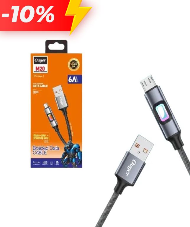 - The OUGER M20 Lightning Cable is an innovative mix of functionality and style, designed to enhance your device’s charging experience. Its unique seven-color breathing lamp design sets it apart, providing a visually appealing indicator of charging activity that pulses gently, making it easier to locate your cable in the dark.
