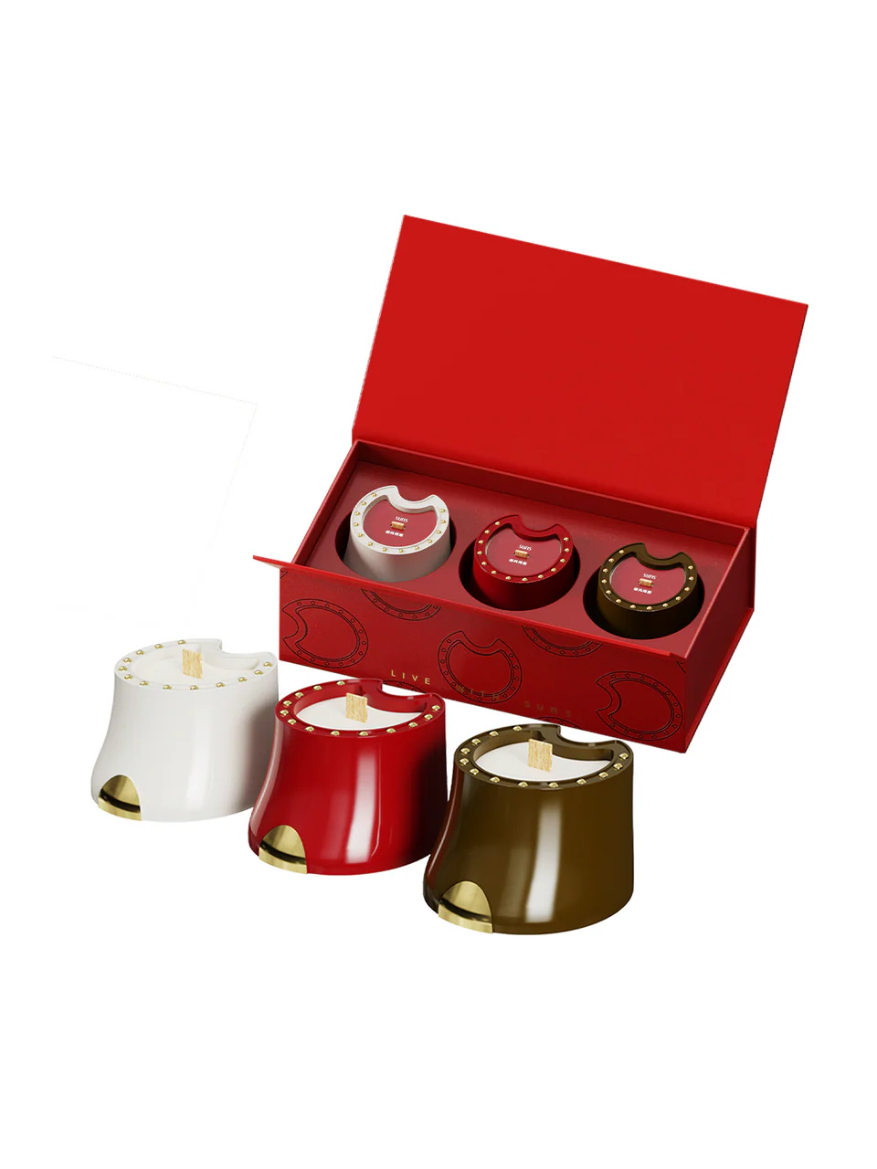 Designed in a horseshoe form symbolising good fortune, this scented candle set adds warmth and comfort to everyday spaces.