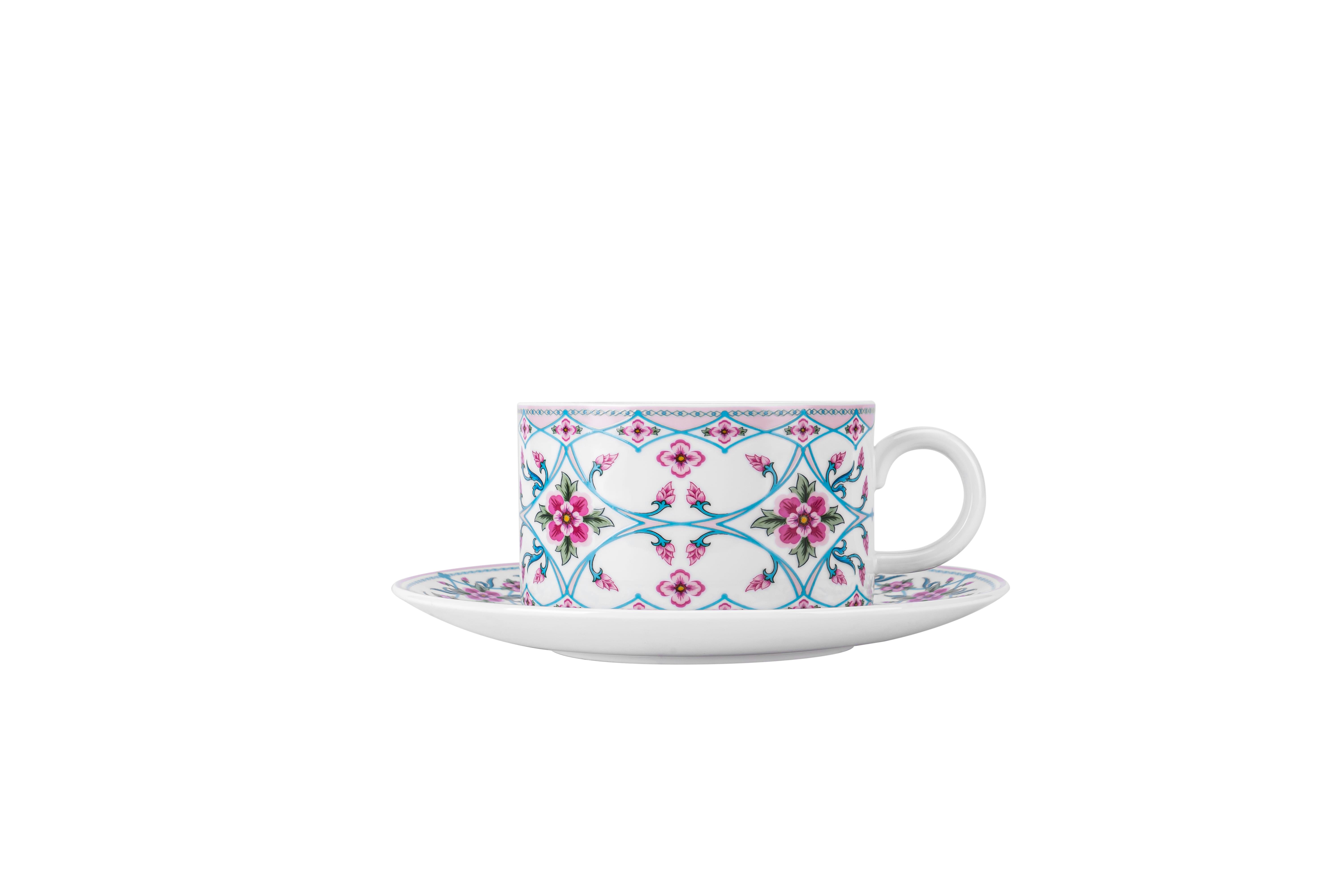 This tableware set, inspired by Southeast Asia's unique Nyonya culture, features a square continuous pattern of Nyonya flowers. Reinterpreting traditional motifs with modern techniques, the design blends classic Chinese decorative art with contemporary aesthetics through repeated, harmonious floral patterns. The straight-cylinder cup design modernizes Nyonya porcelain with sleek lines and minimalist styling, balancing functionality and artistry for versatile home use.