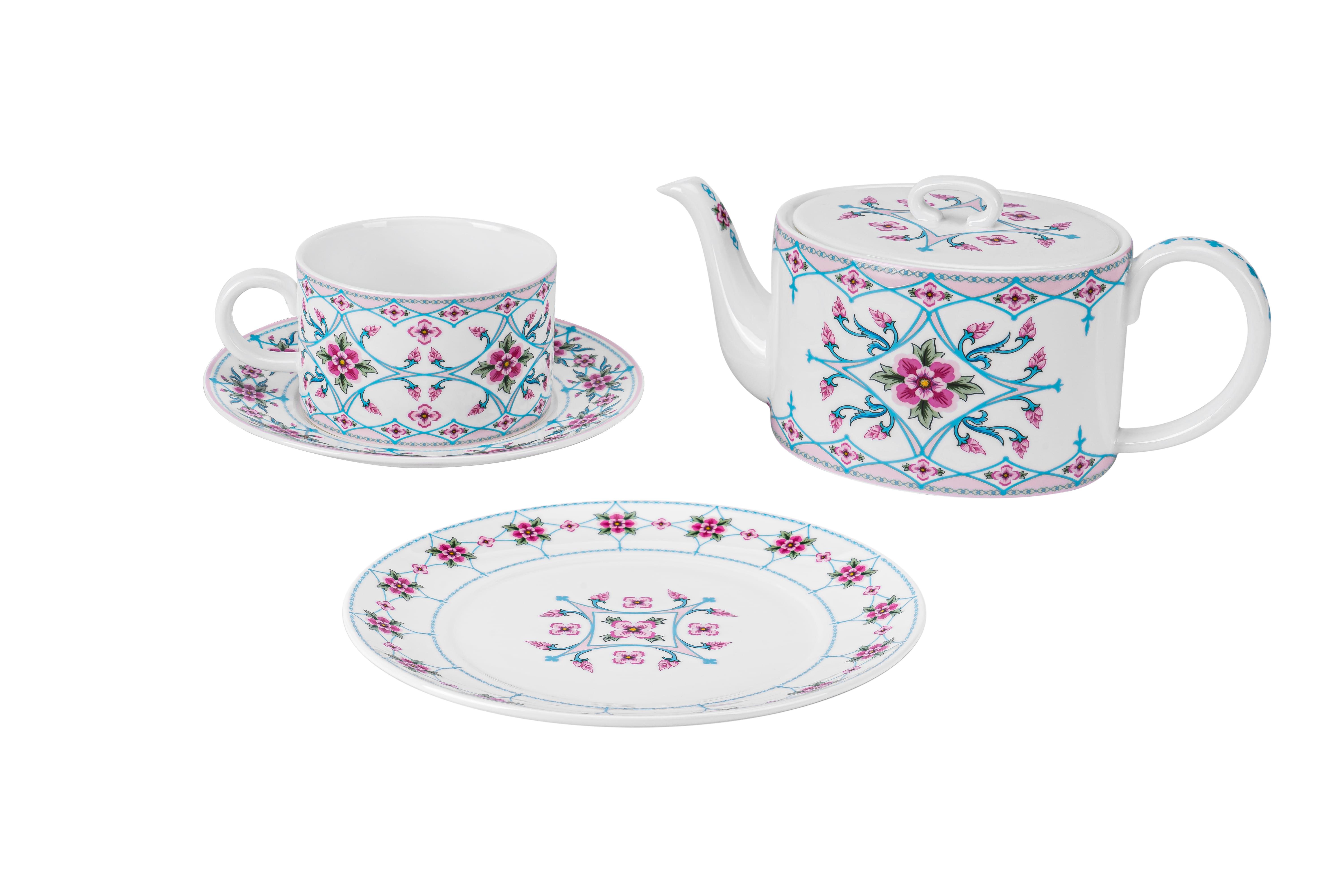 This tableware set, inspired by Southeast Asia's unique Nyonya culture, features a square continuous pattern of Nyonya flowers. Reinterpreting traditional motifs with modern techniques, the design blends classic Chinese decorative art with contemporary aesthetics through repeated, harmonious floral patterns. The straight-cylinder cup design modernizes Nyonya porcelain with sleek lines and minimalist styling, balancing functionality and artistry for versatile home use.