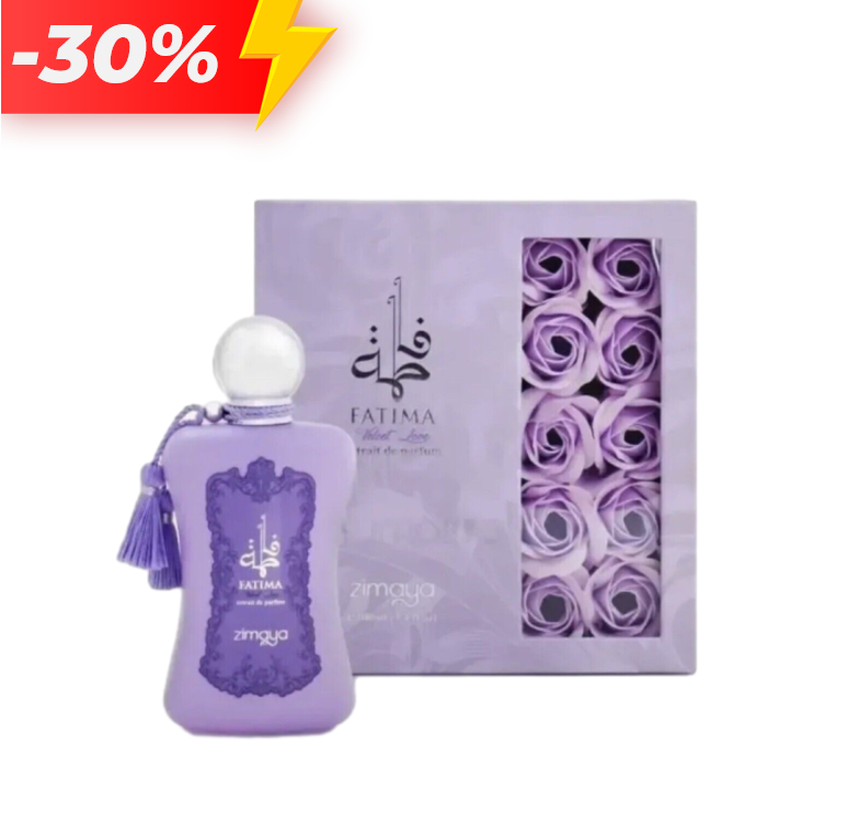 Fatima Velvet Love is a feminine extrait de parfum by Zimaya (Women’s 100 mL) that blends fruity, floral and warm-woody gourmand elements. It opens with juicy top notes of passionfruit, peach, pear, aqueous/sea facets and amber. The heart features lily-of-the-valley, jasmine and ylang-ylang. The base rests on musk, sandalwood and caramel for a warm, sweet and slightly resinous finish.